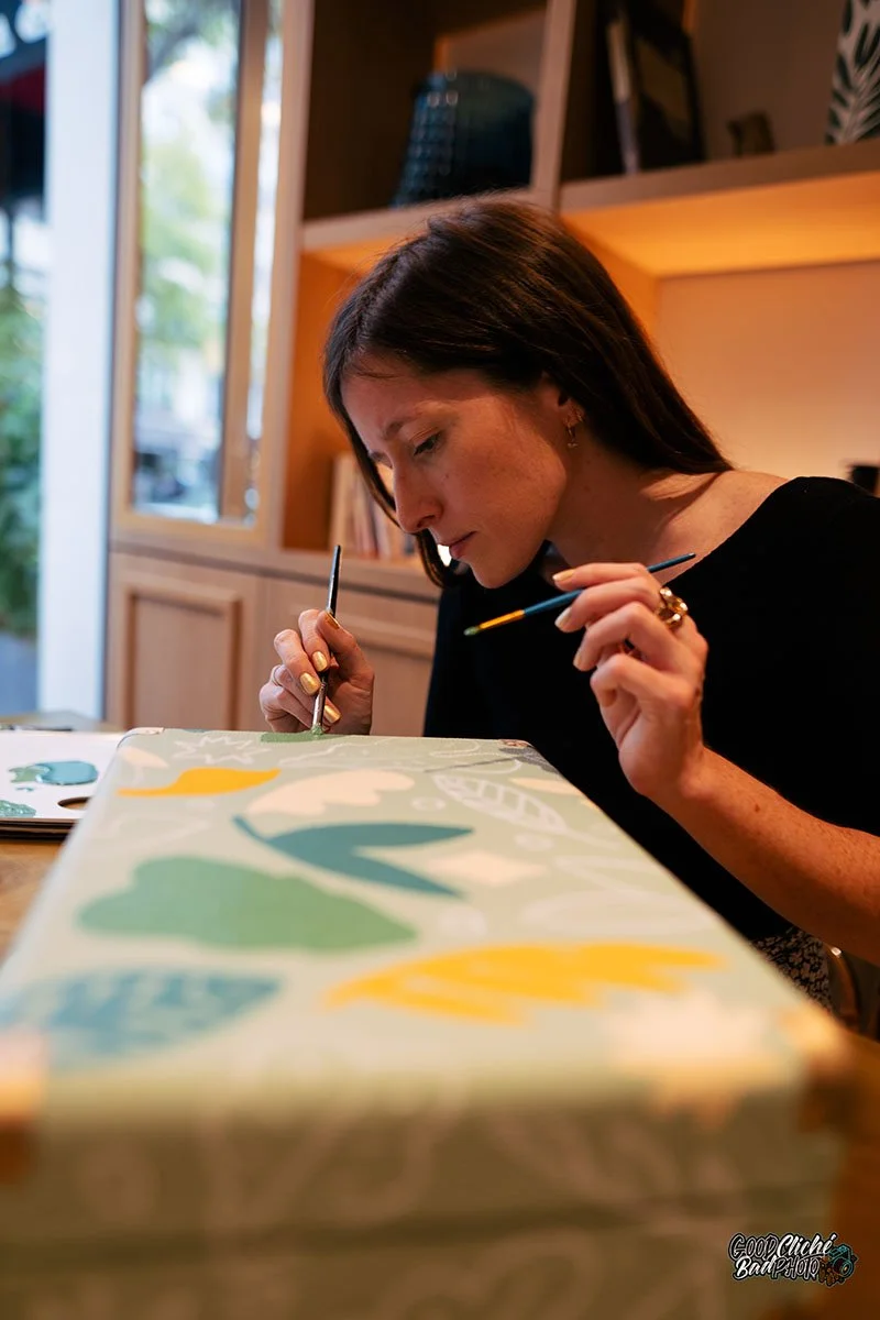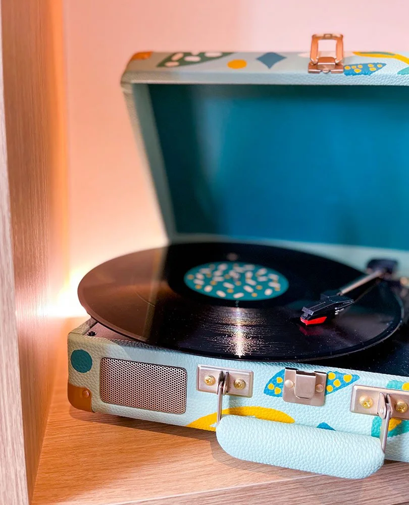 Customization of a vinyl record player during an artistic stay at the ibis Styles Paris Gare de Lyon hotel for the “Draw My Styles” campaign. The fun and colorful illustrations match the hotel’s herbalist-themed decor.