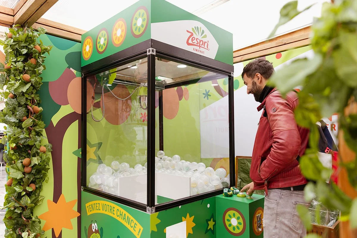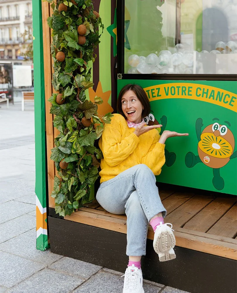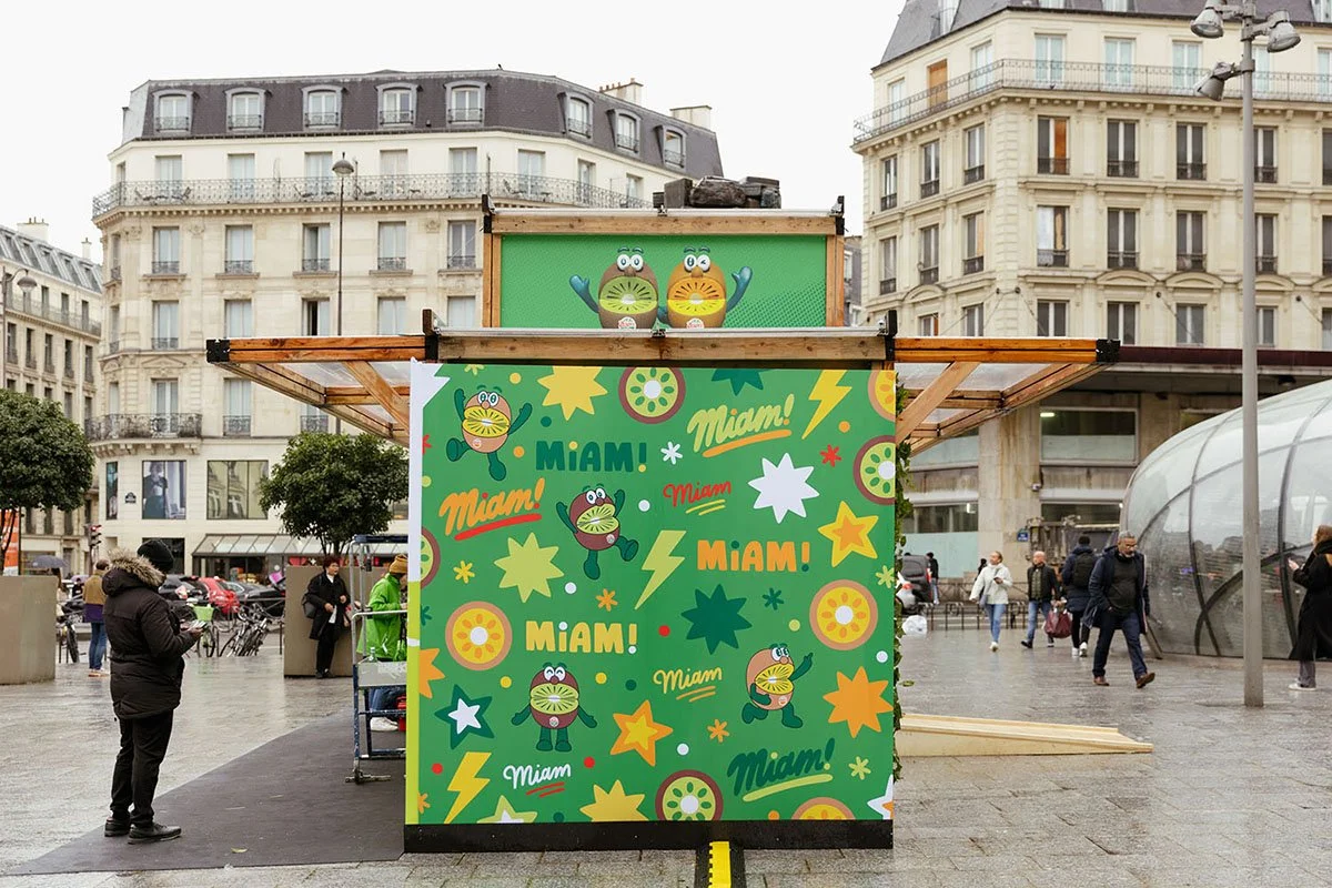 360° Artistic direction - Fruity illustrations and sumptuous lettering to brighten up the Zespri space installed at the Saint-Lazare train station, transformed in the brand’s colors for a week. I designed the layout for the reception, photocall, claw machine, and a mural.