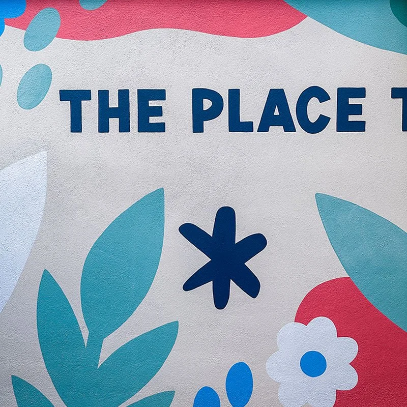 The design highlights their slogan, “The place to be Atipic”, paired with their signature asterisk, brand colors, and a mix of floral, botanical and abstract elements. Completed in September 2023, the mural adds a lively, welcoming atmosphere while reflecting the agency’s unique identity.